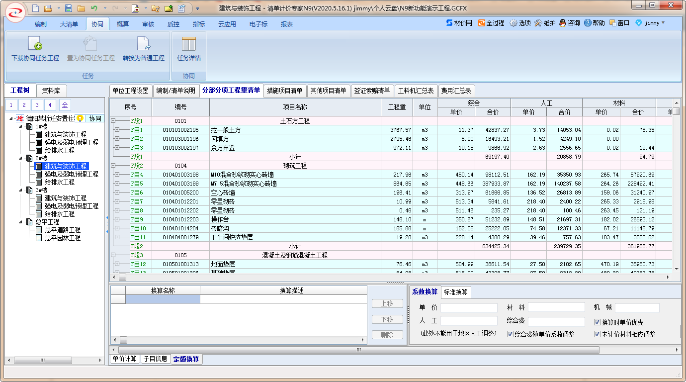 丰富的编制模式,满足用户常规编制、小清单模式编制、复杂工程网络协同编制等不同需求。新增协同编制模式,支持常规编制模式、大清单模式全模式在线协同编制,全面提高复杂大工程的编制效率和质量。