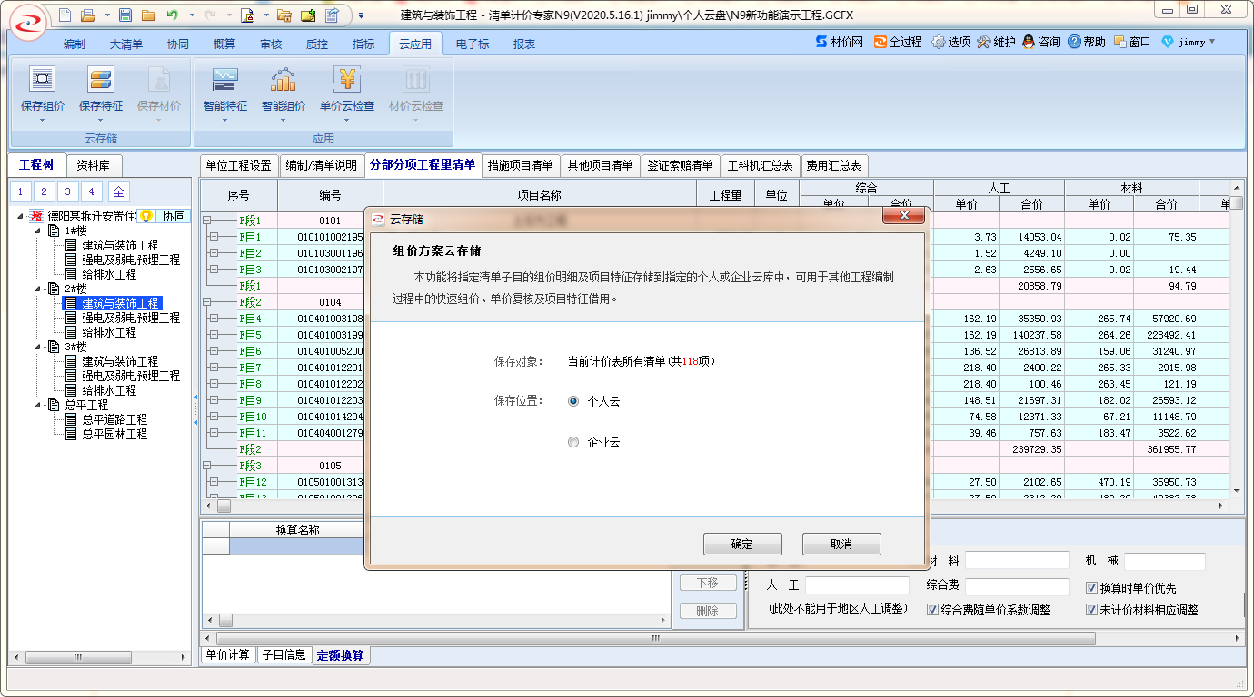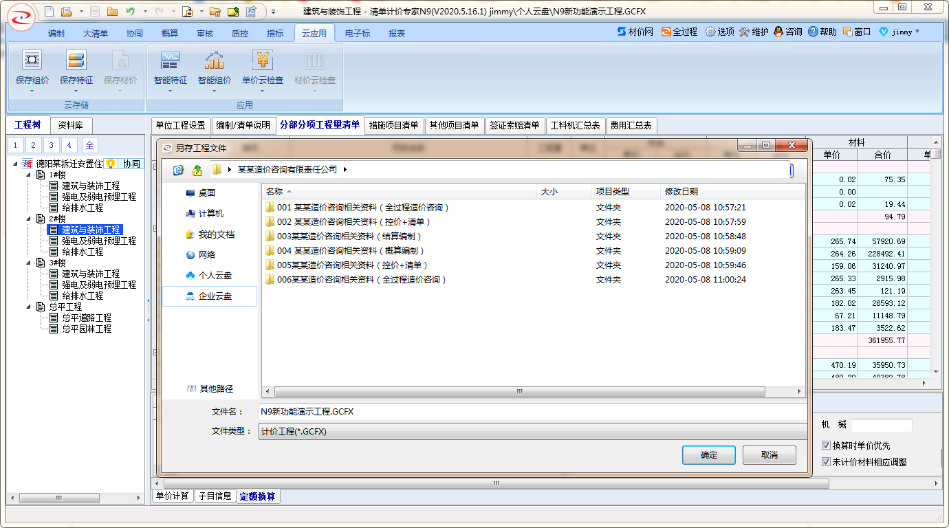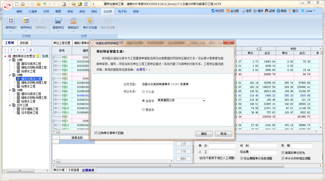 云数据管理,借助云平台积累个人或企业自己的数据资产,可建立个人清单库、组价库、项目特征库、材料库,以及企业清单库、定额库、组价库、项目特征库、材价库。
