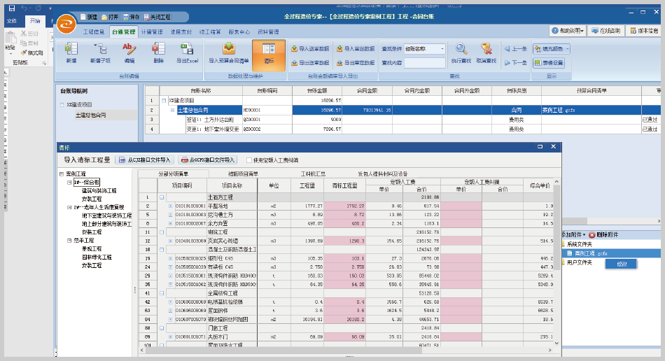 过程数据全电子化,实现无纸化办公;支持台账信息、台账金额构成文件、台账附件集中在软件中管理,避免数据丢失;数据查找方便快捷;支持自定义台账类别;与宏业《清单计价专家》无缝链接。