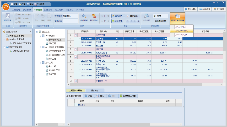 工程量数据集中管理、成果数据快速调用;与算量软件无缝对接;支持表格数据导入。